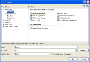 Project menüsünden yeni bir Visual Basic Windows Application uygulaması